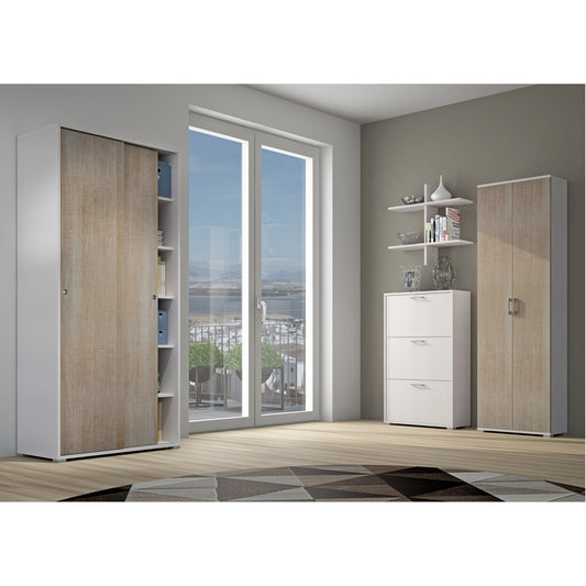 Terraneo multipurpose wardrobes combine versatility and practicality. Space-saving solutions for organizing clothes, shoes and any object in the home. Compact, with sliding doors and adjustable shelves, they are ideal for any environment.